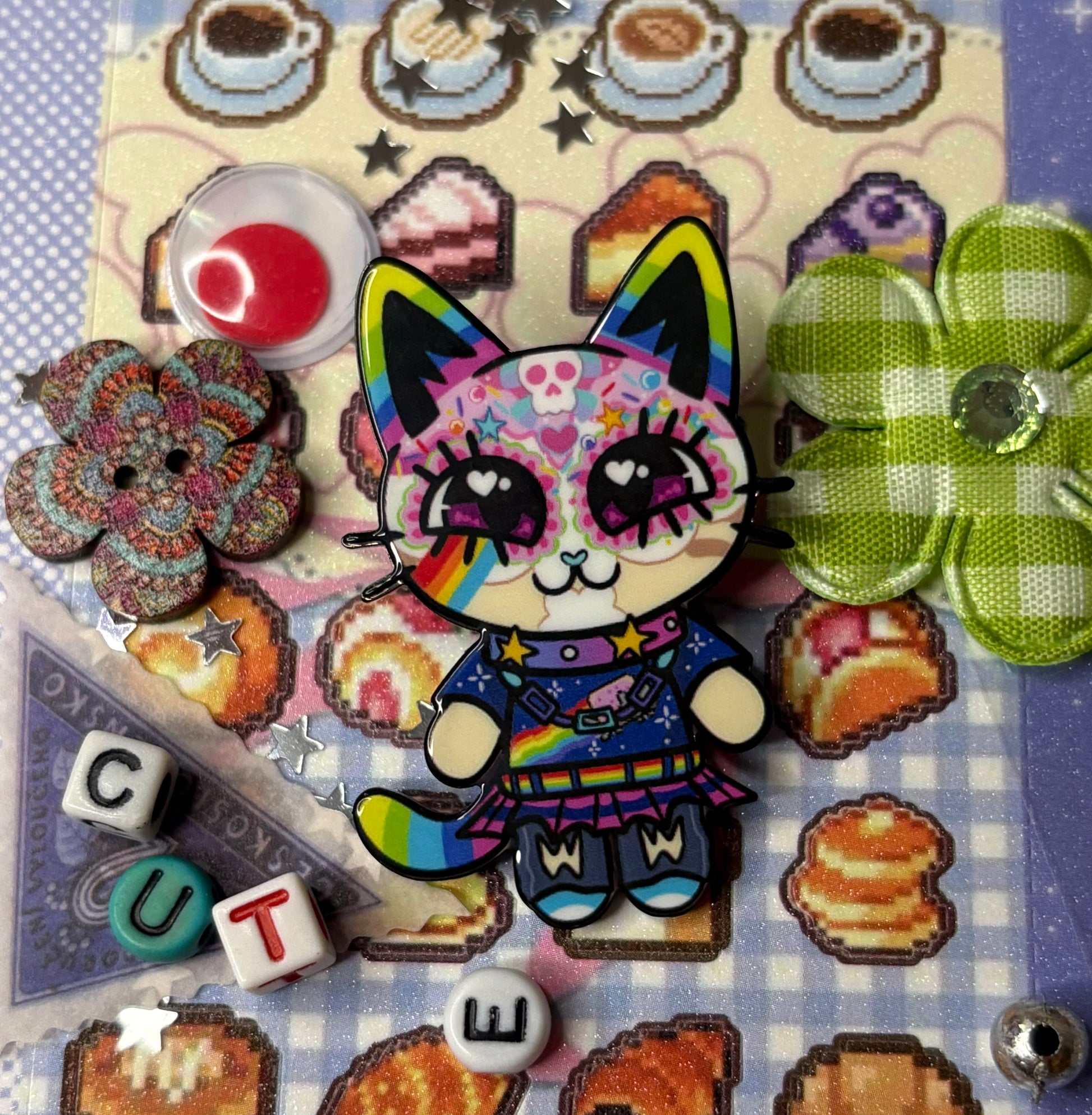 ✨ Add a splash of sparkle to your life with this cat pin! 😺🌈🩷 Perfect for backpacks, jackets, tote bags, or anywhere you want to show it off! ⊹₊⟡⋆ヘ(^o^ヘ)