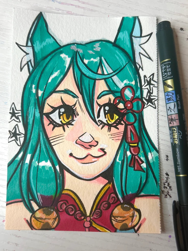 Get a custom shoulders-up drawing that's about 8.5 cm by 12.5 cm with any character you want! (Made with Alcohol Markers and Paint Markers)